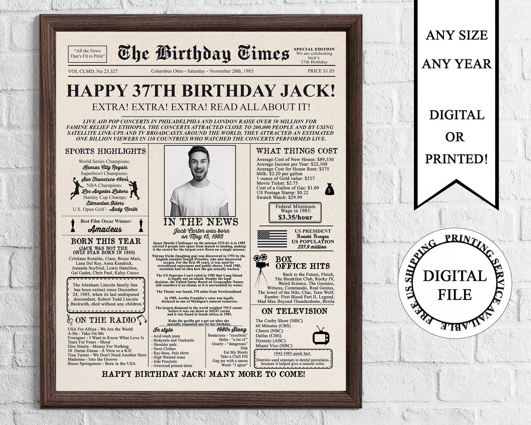 Personalized Newspaper Birthday Poster With Photo Printable Etsy